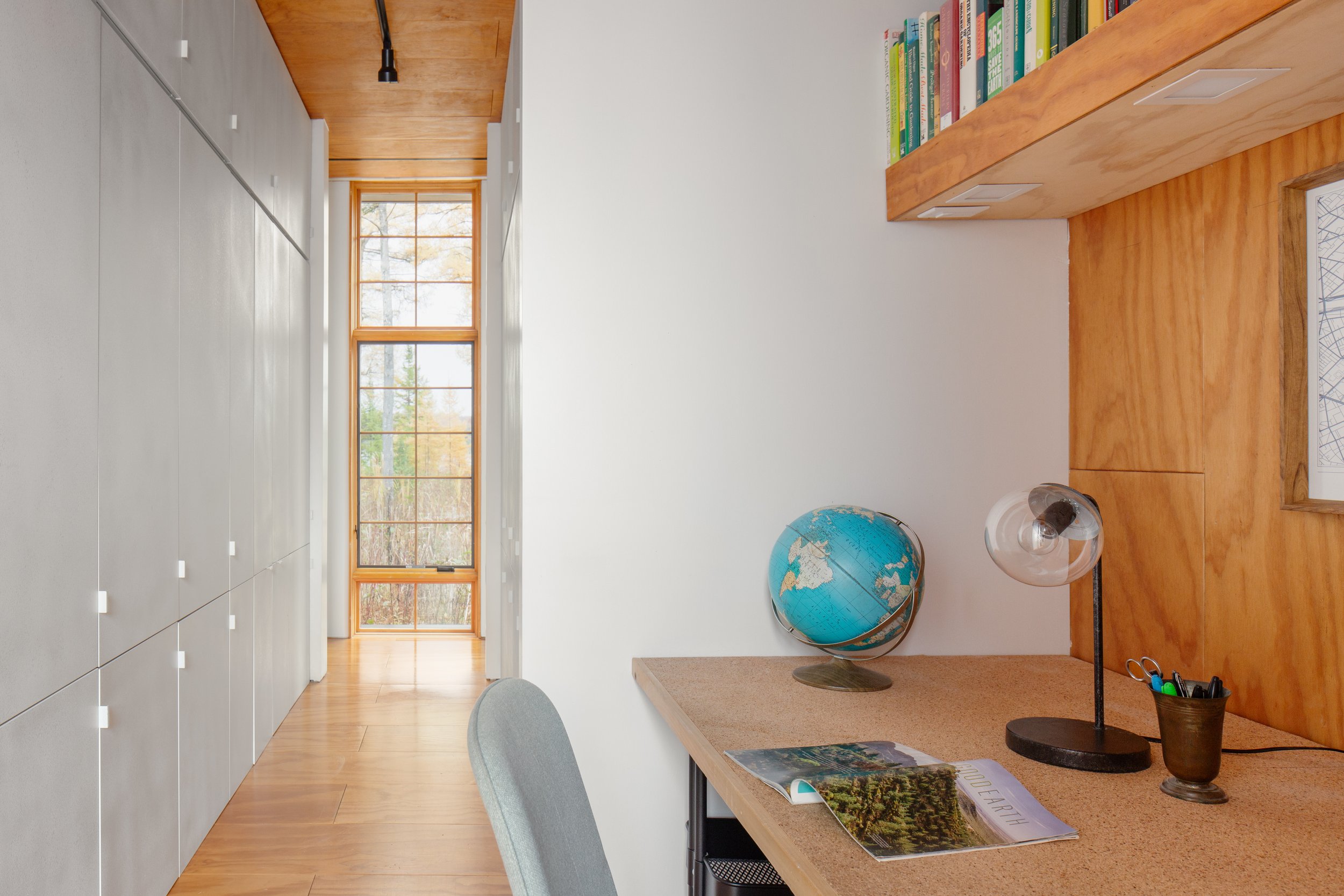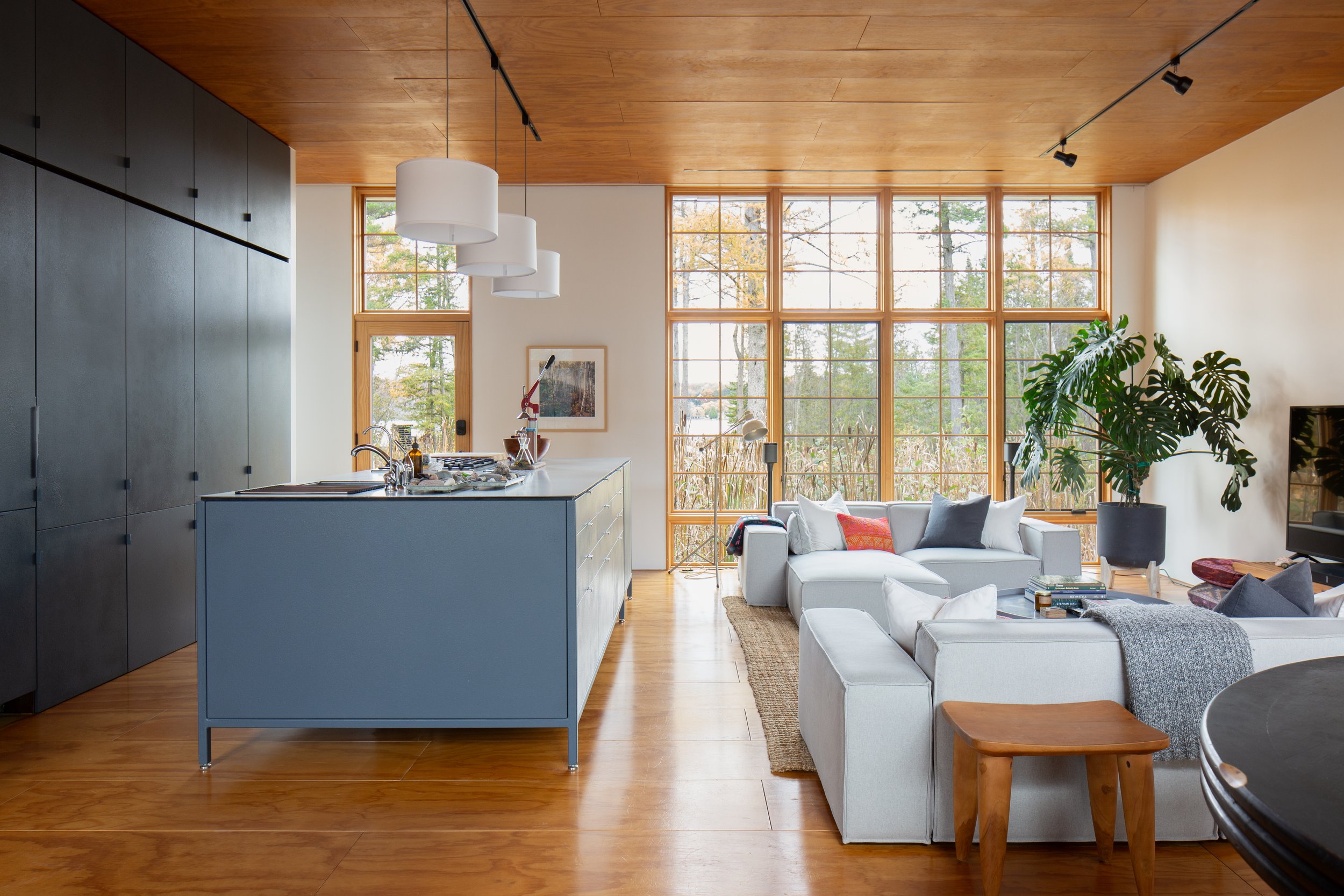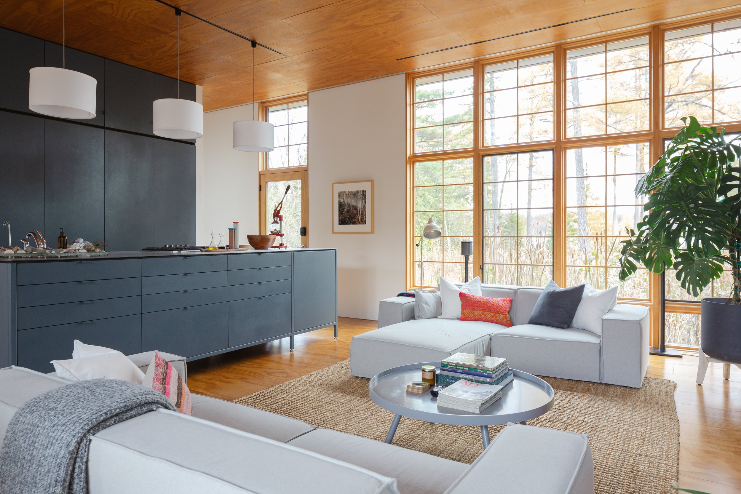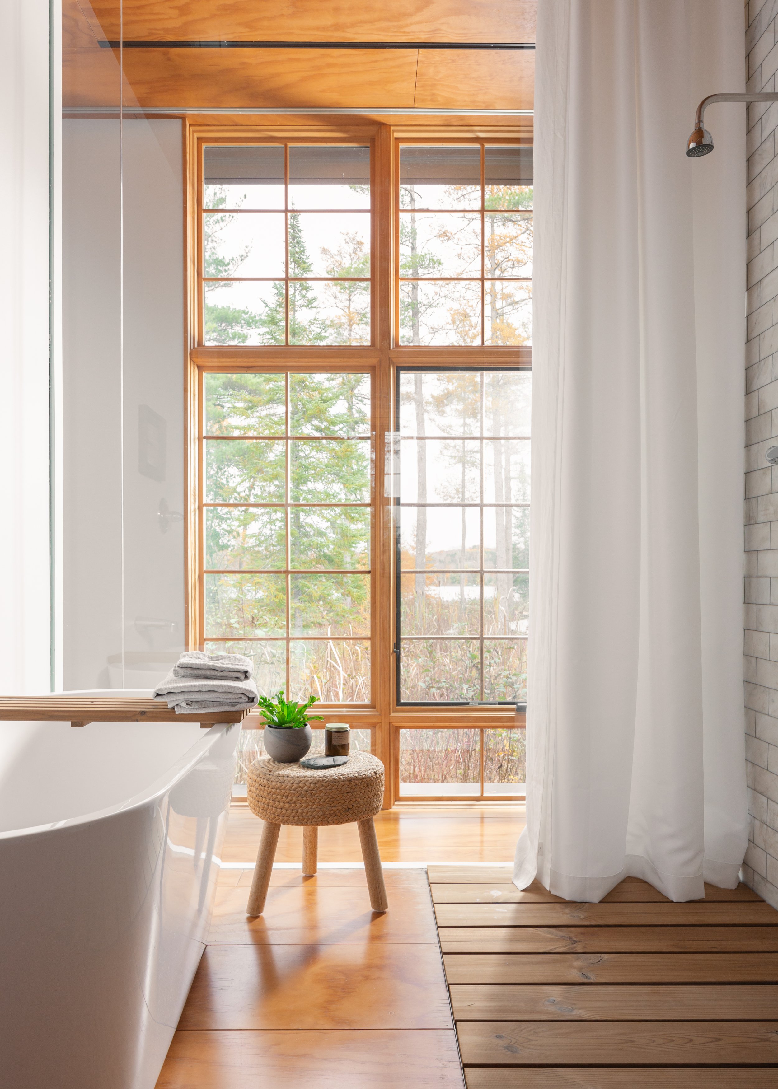 The floor-to-ceiling windows allow you to feel one with the outdoor surroundings. Views of tall tamarack trees, cattails, and wetland flowers greet you the minute you walk in the front door. The local wildlife thrives on this protected piece of property, so expect to see deer, rabbits, squirrels, birds, and, if you're lucky, an occasional bobcat sighting.