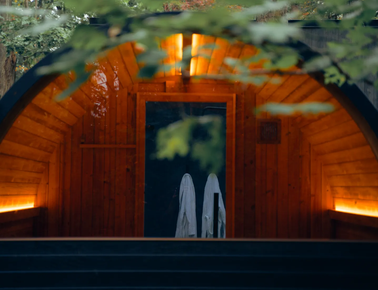 The 50 Series “Cozy” barrels are perfect for two people, with some models large enough for four. They all come with a Wi-Fi enabled HUUM heater, a rain jacket for all-weather protection, and an optional extra-wide window.
